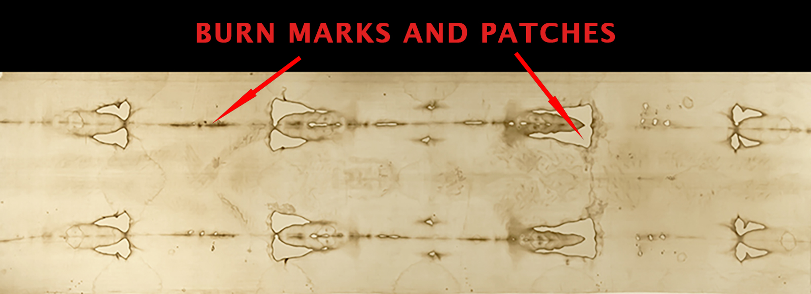“We had, at first, thought that the banner may have originally carried an inscription, now erased, but on closer inspection we noticed extremely faint —almost imperceptible— front-and-back images of a naked, bearded man with shoulder-length hair and hands folded across his groin, and what seemed like droplets of blood and a wound in his side.”